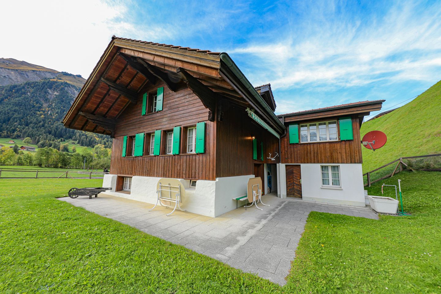 Dieses gemütliche Ferienchalet befindet sich etwa 2 km ausserhalb des Dorfzentrums mit guter Verkehrsanbindung und fantastischer Sicht auf das Wildstrubelmassiv.